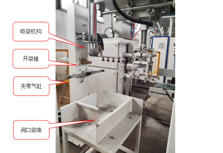自動供袋系統(tǒng)是由吸袋機(jī)構(gòu)、夾帶架構(gòu)、開袋機(jī)構(gòu)、送袋機(jī)構(gòu)、套袋機(jī)構(gòu)等組成。